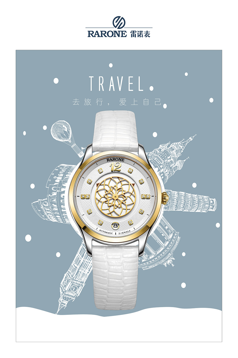 夜色系列是雷諾表的女性腕表系列,以花瓣、天鵝、雪花等富有女性特點的設計元素呈現現代女性的自信優雅,輕松應對職場搭配,隨時保持最佳狀態,釋放女性的美麗和自信。