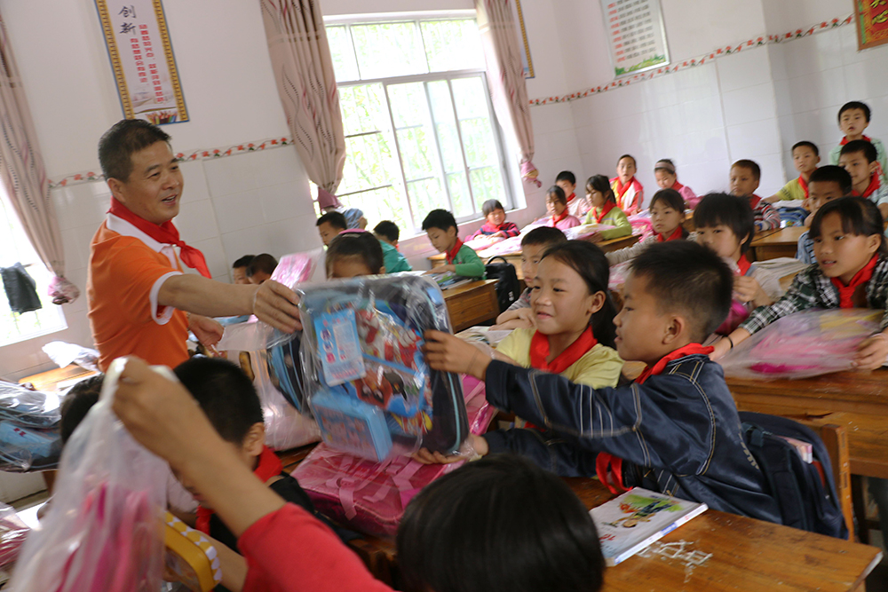 在同社村小學(xué)校長的帶領(lǐng)下,我們的愛心小組參觀了孩子們的教室和宿舍,校長說這里很多孩子每天要走路最少一、兩個小時來上課,條件很艱苦,但孩子們學(xué)習(xí)的積極性很高,也非常懂事。看著孩子們的住宿環(huán)境,我們心里有說不出的滋味。當(dāng)我們拿出為孩子們準(zhǔn)備的新書包時,孩子們的眼里有光,詹總親自給每一位孩子送上新書包,孩子們露出了純真的笑臉。