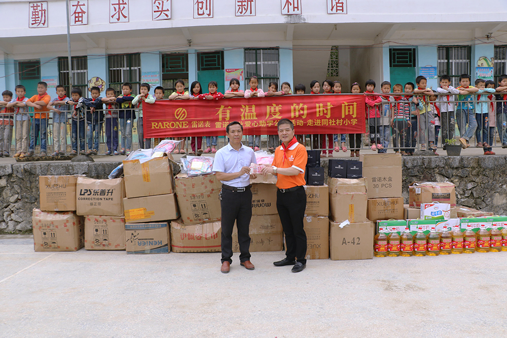 雷諾表愛心小組帶著滿滿的社會責(zé)任感走進(jìn)同社村小學(xué),詹總表示這并不是雷諾表第一次參與愛心公益活動,雷諾表的每一次愛心行動只是拋磚引玉,希望能夠影響更多的人去關(guān)注公益事業(yè),人人貢獻(xiàn)一點愛,這個世界會更精彩。更何況與駐守大山的老師相比,我們的愛心助學(xué)行動做得遠(yuǎn)遠(yuǎn)不夠,我們更應(yīng)該向這些默默無聞的教育工作者學(xué)習(xí)。雷諾表為同社村小學(xué)的每一位老師送上雷諾手表,用有溫度的時間和老師們一起陪伴孩子們的成長。